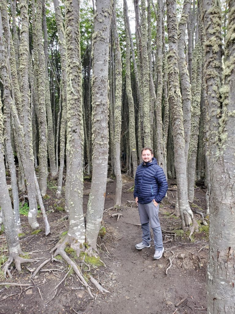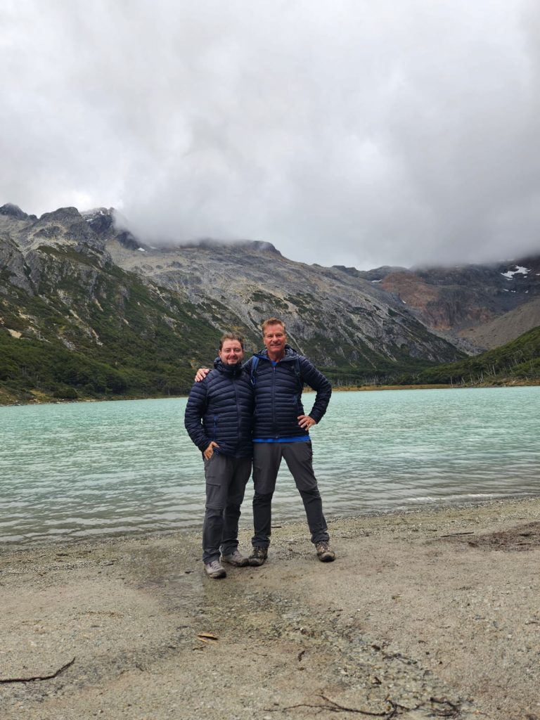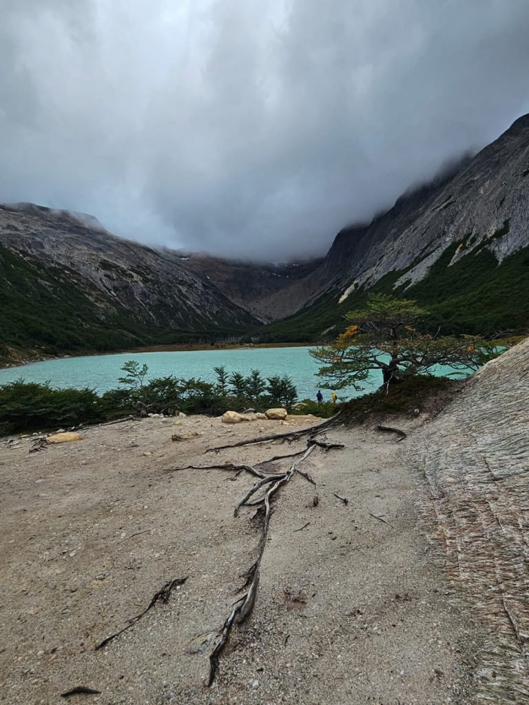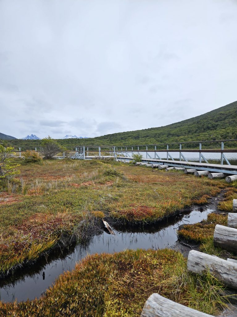 01.03.25 Eine Wanderung zur Laguna Esmeralda stand heute auf dem Plan. Die Wanderung führte über die typischen Torfböden, durch Lenga Wälder und an kleinen Seen und Flüssen entlang. Beginnend mit einem kleinen Anstieg durch einen Lenga Wald, der durch seine mit langen Flechten behangenen Bäumen an einen Märchenwald erinnerte. Für diese Wanderung empfiehlt sich festes Schuhwerk, da der Weg recht matschig und aufgeweicht ist. Nach ca. einer halben Stunde gibt uns der Wald den Blick auf die in der Ferne verschneiten Berge frei. Ein großartiger Anblick, den man nicht so schnell vergisst. Weiter geht es über Stege durch die moorige Ebenen, durch Wälder bis zum letzten Anstieg über steiniges Gelände. Und dann erblickt man sie: smaragdgrün schimmert die Lagune, im Hintergrund die schneebedeckten Berge. Ein herrlicher Anblick, den wir aber aufgrund des starken kalten Windes nicht so recht genießen konnten. An einer windgeschüzten Stelle nahmen wir unser mitgebrachtes Vesper ein und traten schon bald den Rückweg an. Der Rückweg war, durch die vielen Wanderer noch viel mehr schlammiger geworden. Zurück in Ushuai ließen wir noch beim Optiker das herausgefallene Glas von Roberts Lesebrille reparieren.