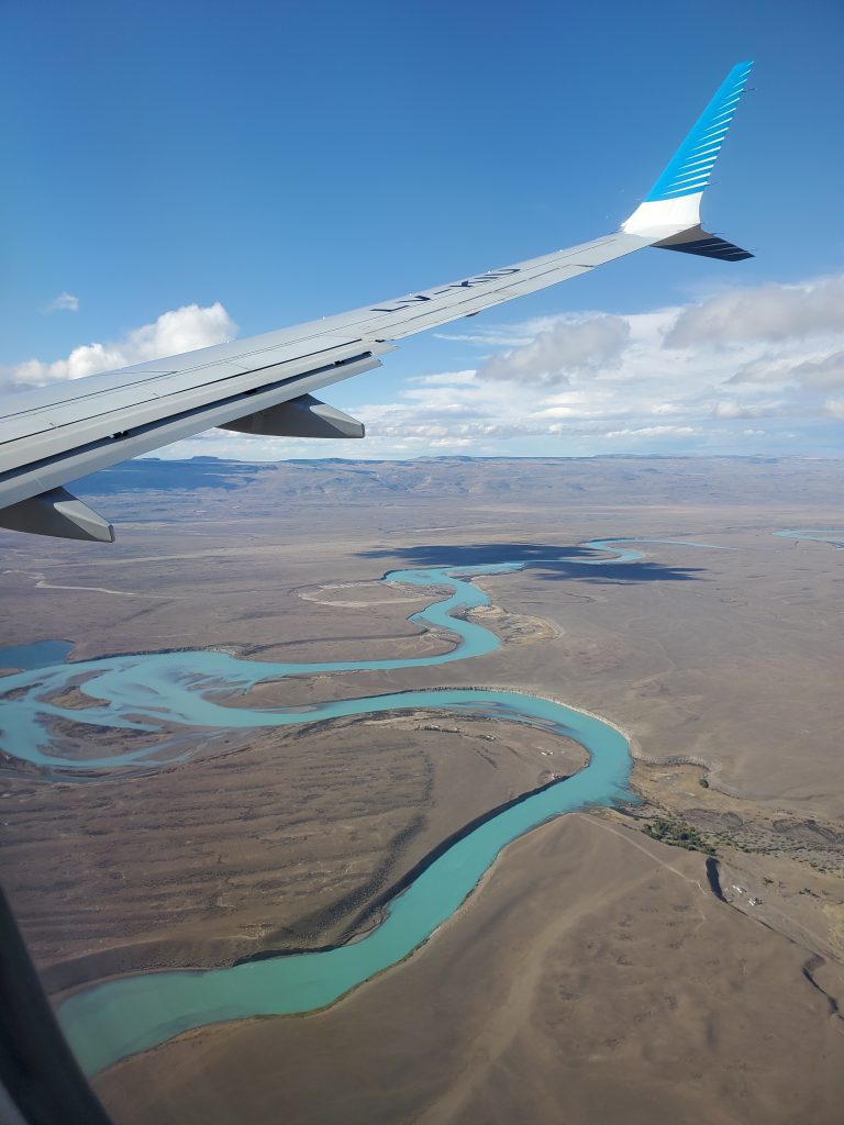 So sah die Landschaft beim Anflug auf El Calafate aus. Der türkisfarbene Rio Santa Cruz war schon eine Augenweide. Am Flughafen nahmen wir unseren Mietwagen in Empfang und machten uns gleich auf den Weg in das Dorf El Chalten. El Chalten liegt im Zentrum des argentinischen Teils von Patagonien und ist eine ganz junge Gemeinde, die erst 1985 gegründet wurde.
