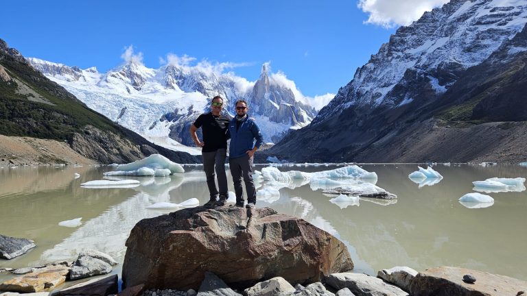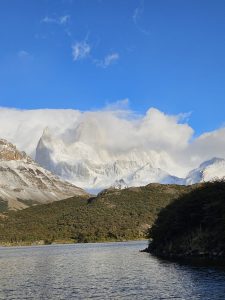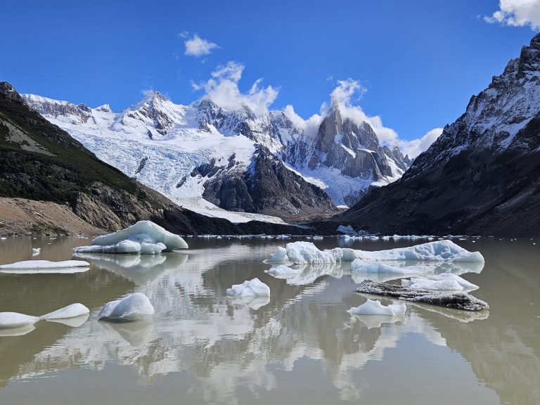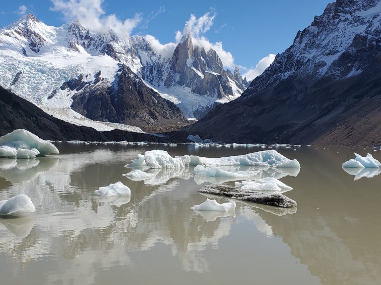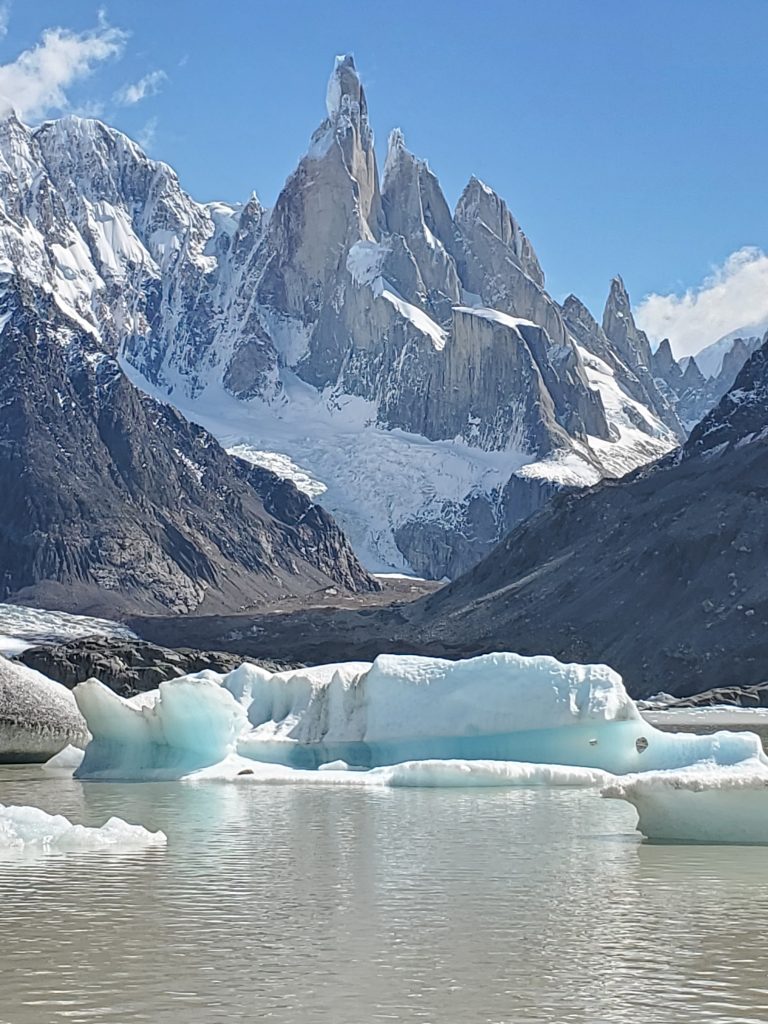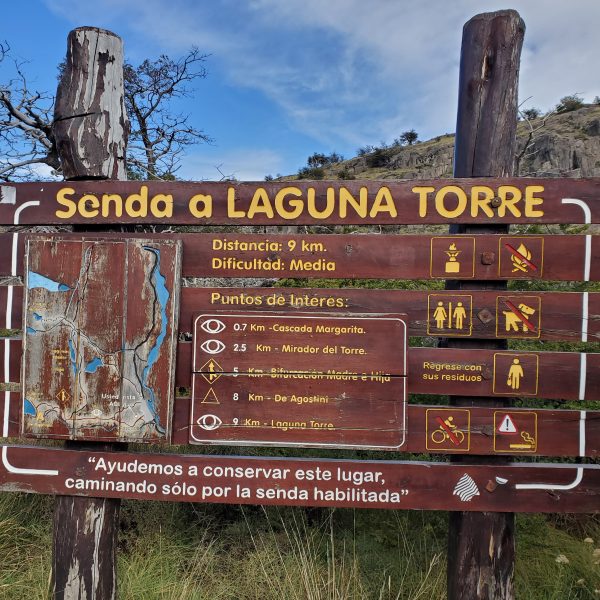 Wir machten es, das Wanderfieber hat uns hier in Patagonien voll gepackt. Schnell waren unser Backpack geschnürt und im Auto verstaut. Der. Weg zur Laguna Torre ist so ca. 9 km lang und nicht sehr schwierig. Eine gewisse Grundkondition sollte man alllerdings schon haben. Am Anfang kommt erst ein etwas steiler Einstieg bevor der Weg sich in flache und wieder etwas nach oben führende Abschnitte aufteilt. Das letzte Drittel führte uns durch einen Wald bis zu einer Gabelung. Wir entschieden nach rechts zu gehen, was im Nachhinein der schlechtere Weg war. Die Bäume versperren die ganze Aussicht. Also hier sollte man an der Gabelung links laufen und wandert dann am Flusslauf dem Cerro Torre entgegen. Oben angekommen bot sich uns wieder mal ein einzigartiges Bergpanorama, wie es das in dieser Art selten auf der Erde gibt. Der Bergsee wir durch das Schmelzwasser des Torre-Gletschers gespeist und hat daher seine Farbe. Meistens treiben auf dem See kleinere und größere Eisschollen.