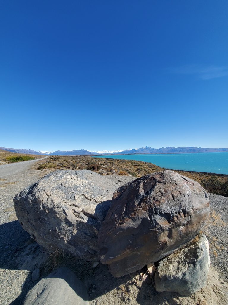 Das Fahren ging soweit ganz gut, aber der patagonische Wind ließ das Auto ganz ordentlich schaukeln. Die Landschaft sah wieder mal ganz anders aus, karge Steinwüste mit buschigen Grasbüschel übersäht und wir sahen hier die ersten Guanackos. 🦙