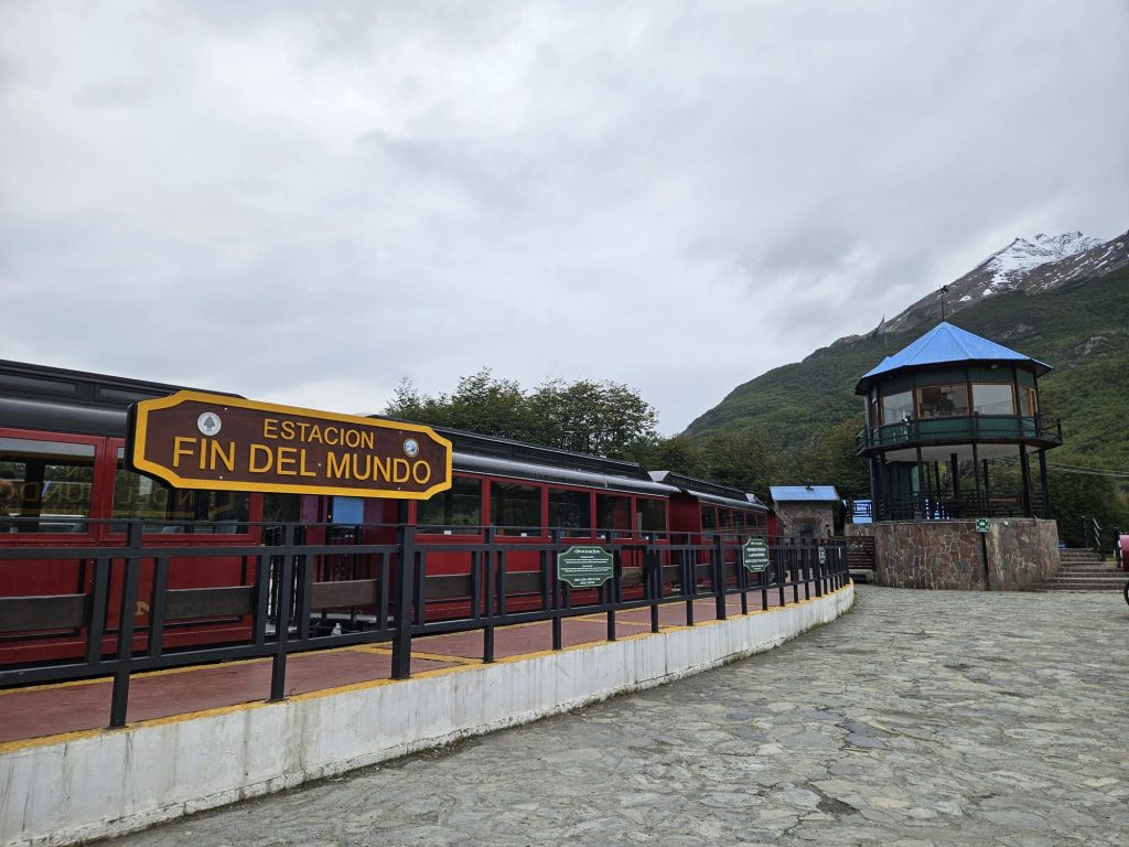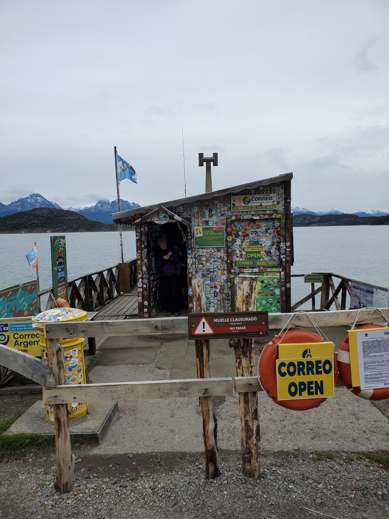 Um ein wenig beweglich zu sein, haben wir heute unseren Mietwagen am Flughafen abgeholt. Und dann ging es auch schon los in den NationalparkTierra del Fuego. Der Eintritt in den Nationalparkist nicht ganz billig, er kostete ca. € 30 pro Person. Am Eingang wurde uns anhand einer Karte die verschiedenen Stops erklärt. Zum südlichsten Postamt könnten wir aber nicht, da dort gebaut wird. Sichtlich enttäuscht rollten wir auf der dirty Road los. Unser erster Stop führte uns an den Bahia Lapataia, einer Bucht am Beagle-Kanal. Die Bucht ist bekannt für ihre reiche Tierwelt und ist auch das Ende der Nationalstrasse 3. Hier kan man in herrlicher Landschaft wandern und die Ruhe genießen. Auch wenn das Postamt geschlossen hat, so wollten wir es doch von außen anschauen. Wie wir ankamen staunten wir nicht schlecht: das Postamt hat geöffnet! Überglücklich eilten wir hinein. Drinnen sieht es aus wie in einem Museum, überall Andenken und allerlei Firlefanz. Wir wollten unbedingt Postkarten schreiben und von dort verschicken, die waren echt teuer. Zwei Karten kosteten 17000 Arrgentinische Pesos, wir hatten aber nur noch 16000 Pesos. Der urige Postbeamte schenkte uns die 1000 Pesos und stempelte die Karten ab. Ja das waren dann so ca. € 15 für die zwei Karten, aber man ist ja nur einmal da. Auf der Rückfahrt hieltenwir noch an der Eisenbahnstation an. Hier fährt der Tren del fin del mundo.