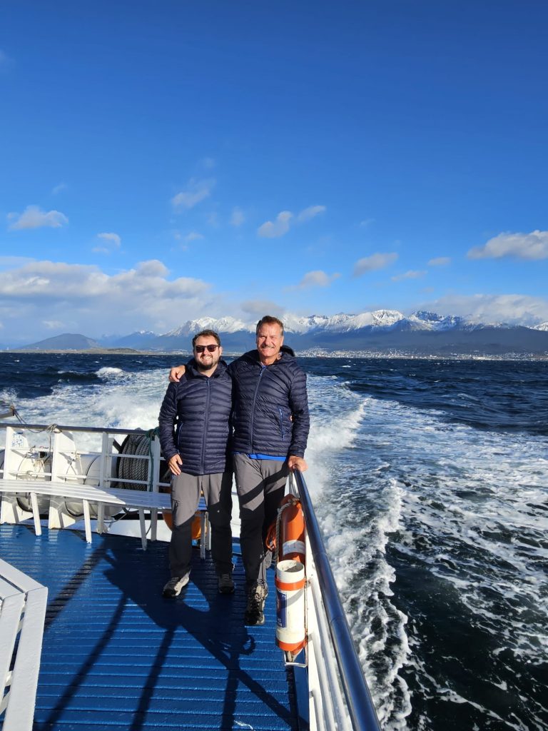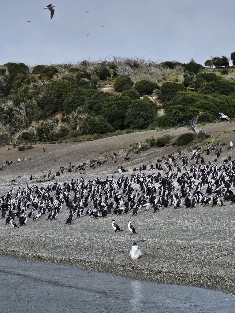 Heute hieß es um sechs Uhr aufstehen, frühstücken und an den Hafen laufen. Denn heute machten wir eine Bootsfahrt auf dem Beagle Kanal zum Leuchtturm und der Pinguin Insel. Das Wetter war echt okay, Wolken wechselten mit längeren sonnigen Abschnitten. Am Bug vorne musste ich auch meine Mütze aufziehen, der Fahrtwind war schon kalt. Aber es gab heiße Getränke umsonst an Board. In der Ferne sahen wir schon unseren ersten Stopp, der Leuchtturm Faro Les Eclaireurs. Auf dieser kleinen Felsinsel leben sehr viele Seelöwen, Kormorane und andere Vögel. Das Boot für sehr nahe an die Insel ran. Weiter ging es zur Pinguininsel Isla Martillo. Hier legte das Boot am Strand an, aber aussteigen durfte man nicht. An Board sind auch professionelle Fotografen und die kann man buchen. Was die Bilder kosteten wissen wir nicht, da wir diesen Dienst nicht in Anspruch genommen haben. Die Rückfahrt war sehr unruhig. Man konnte überhaupt nicht nach draußen, weil die Gischt über das ganze Boot spritzte. Wir nahmen an, dass die Mitarbeiter pünktlich Feierabend wollten und deshalb ordentlich Speed machten. Es gab etliche Passagiere, denen es übel wurde und das Personal verteilte Spuktüten. Die Rückfahrt war auf jeden Fall nicht schön.